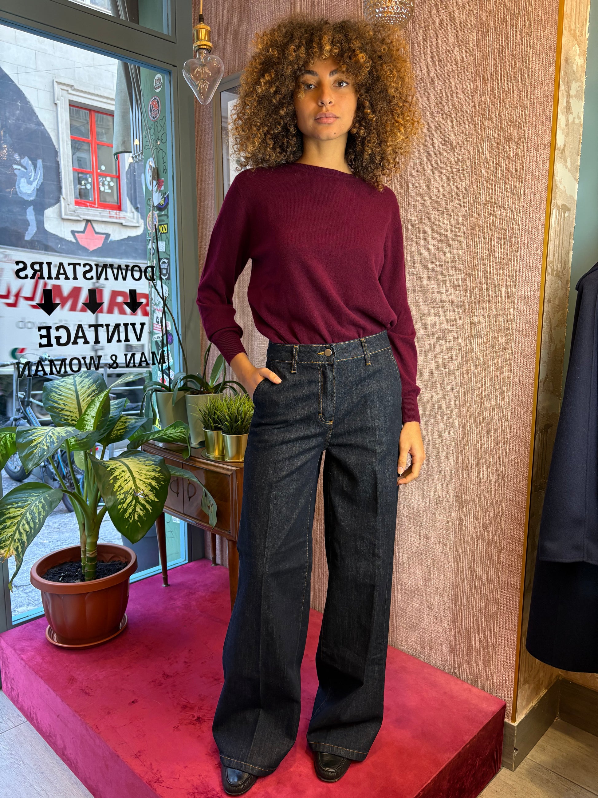 Jeans gamba larga con pattine sul dietro