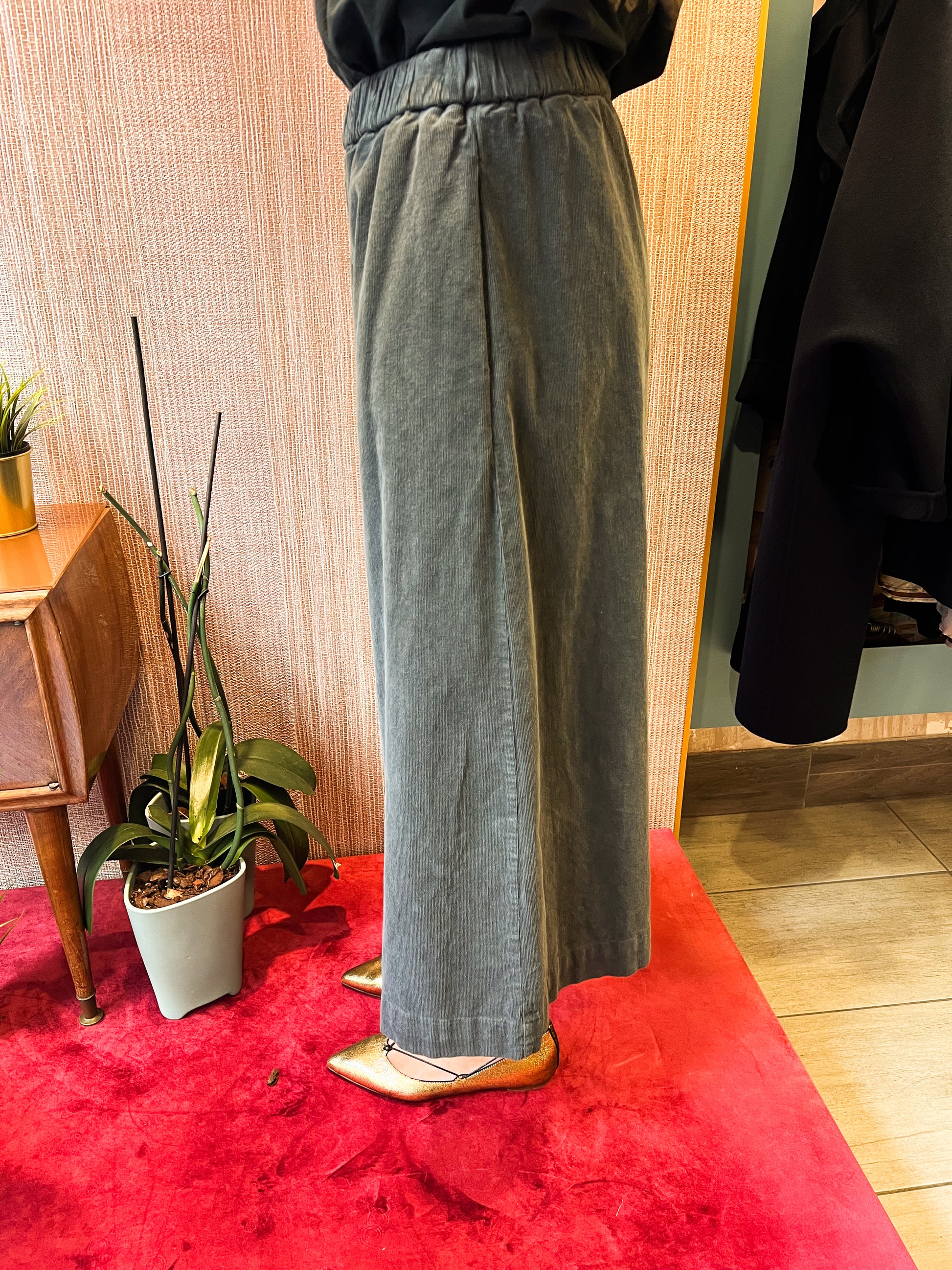 Pantalone micro costine in velluto con elastico in vita e tasche
